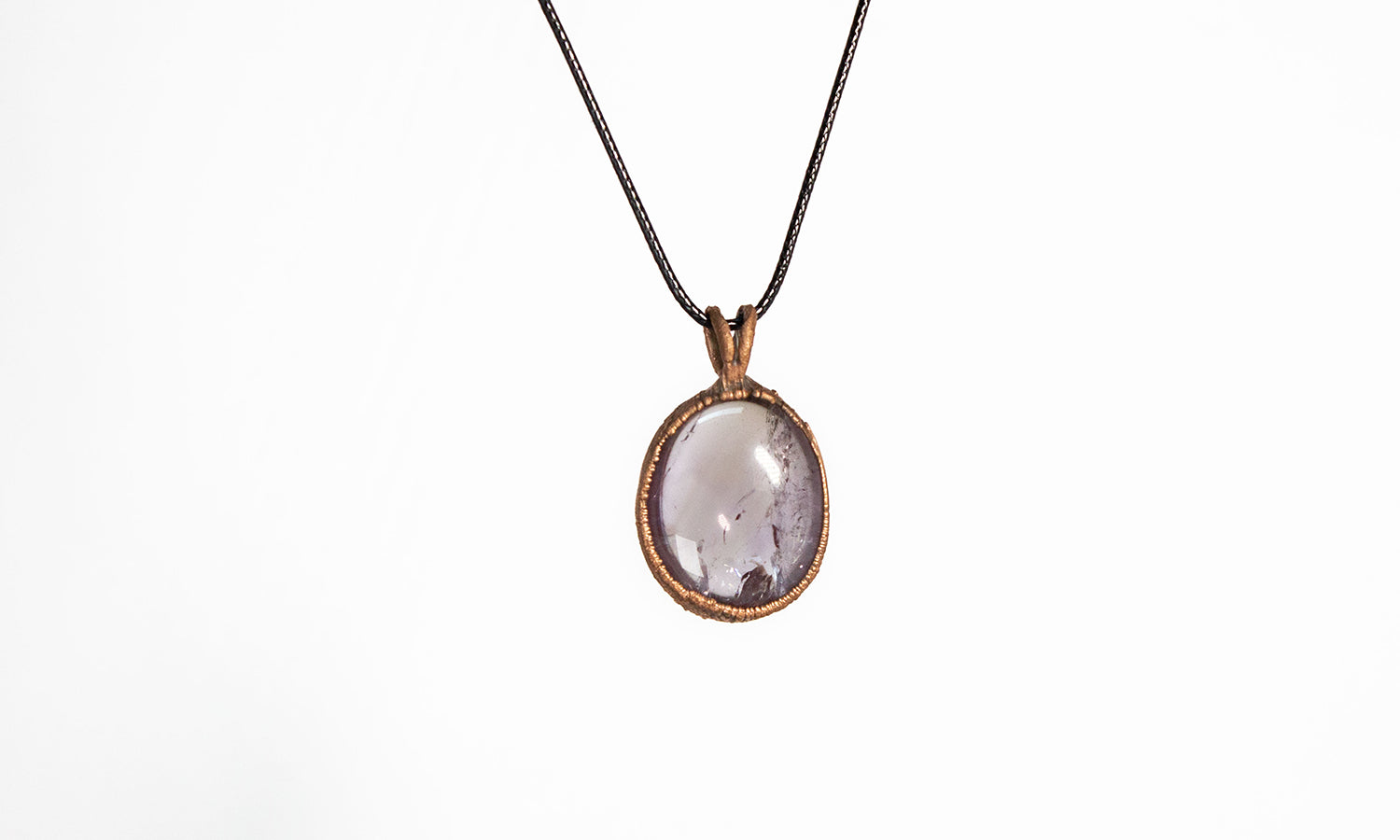 The pendant is made by the process of electroforming, it is a process that uses electrodeposition to form pure copper directly onto the piece over many hours.